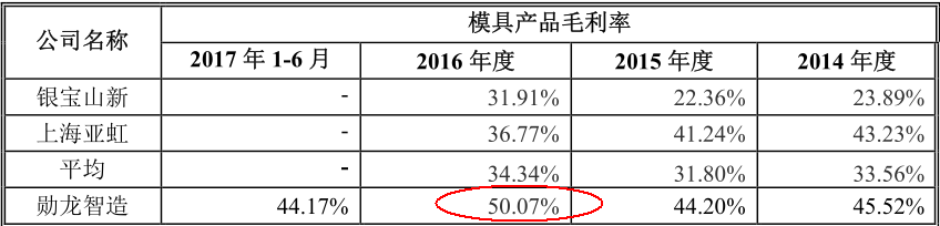 勋龙智制对此注释的来由为:公司出产的汽车模具次要为热冲压模具,近三年一期占汽车模具收入的比例为68。96%、58。90%、84。56%和90。09%,这个热冲压模具钢材特殊、工艺复杂,所以比同业可比上市公司的毛利率高了一点。2017年1-6月,毛利率有所下降,次要由于汽车模具中热冲压模具采用的新手艺不竭成熟,市场所作有所添加,导致价钱下降以及成本有所上升。那么问题来了,既然这个做为顶梁柱的热冲压模具工艺成熟、合作添加、价钱下降,当前毛利率会不会继续降低呢?这点值得考虑。演讲期内,勋龙智制有20%摆布的出产成本是外协加工所致,虽然曾经注释这些外协加工是因产能不脚、交货期紧所致,且委托出去的工序都为简单工序,但对于一家高度定制化出产的公司来说,这些外协加工能否会惹起问题?需要留意。